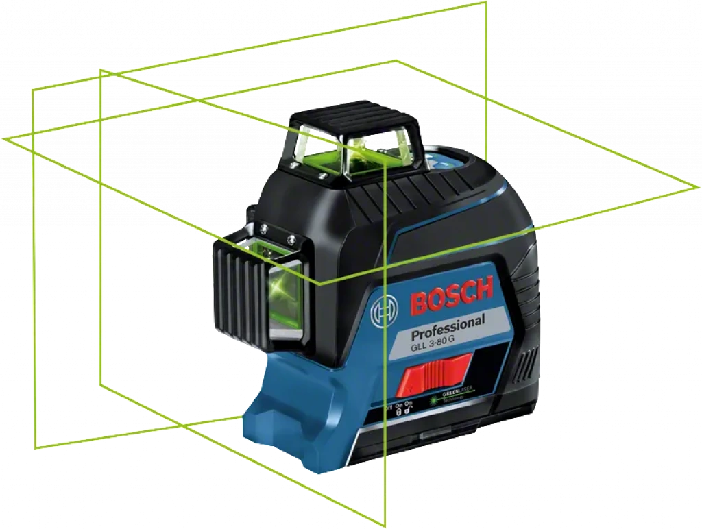 Çizgi lazeri GLL 3-80 Professional, yüksek görünürlüğe sahip kalın 3 x 360° çizgiler yansıtır. Parlak yeşil lazer çizgileri, kırmızı çizgilere göre dört kata kadar daha iyi görünürlük sağlar. Bu alet, odaların tamamı için kullanılabilir ve üç çizgisi sayesinde eş zamanlı yatay ve dikey hizalama uygulamaları için mükemmel ve verimli sonuç sunar. Anlaşılır kullanıcı arayüzü sayesinde kolay çalıştırma.