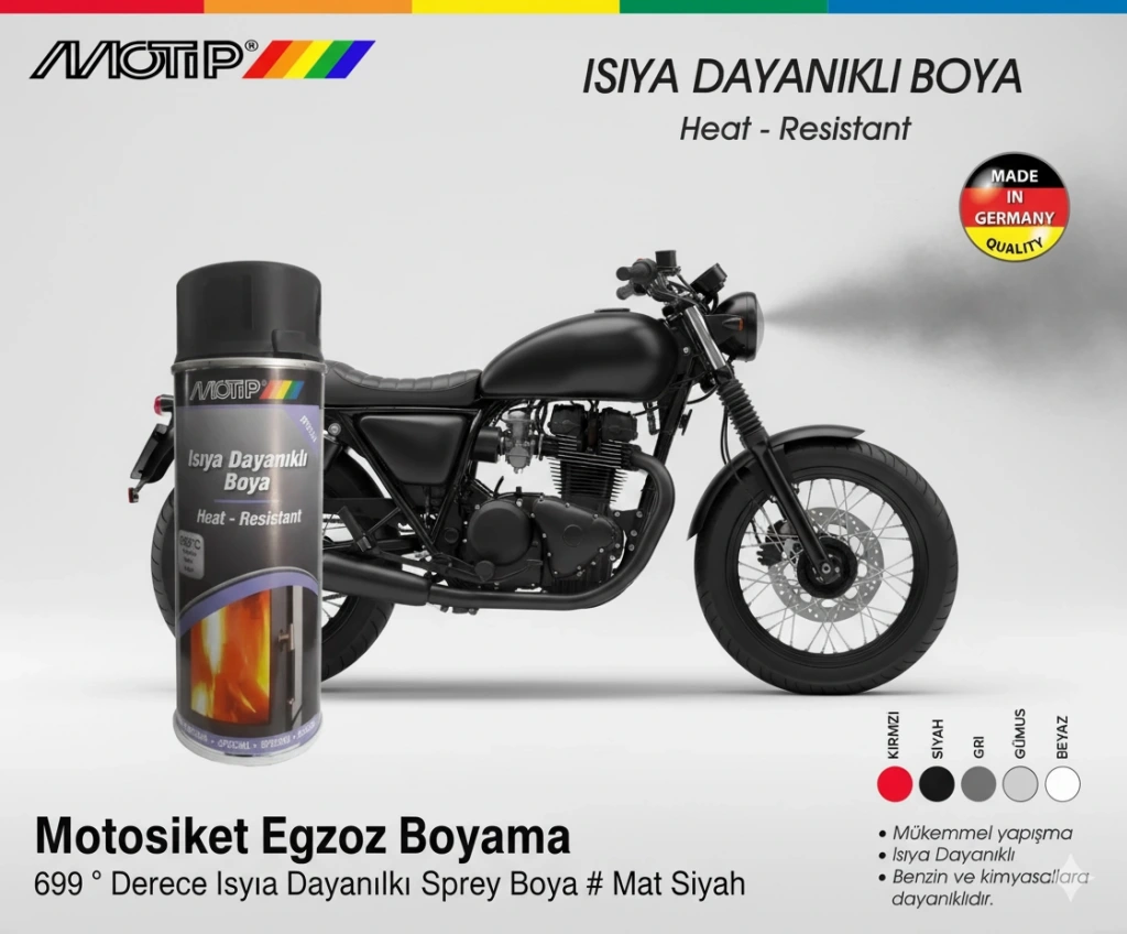 Motip 690°C Derece Isıya Dayanıklı Sprey Boya MAT SİYAH 400 ML Renk: MAT SİYAH