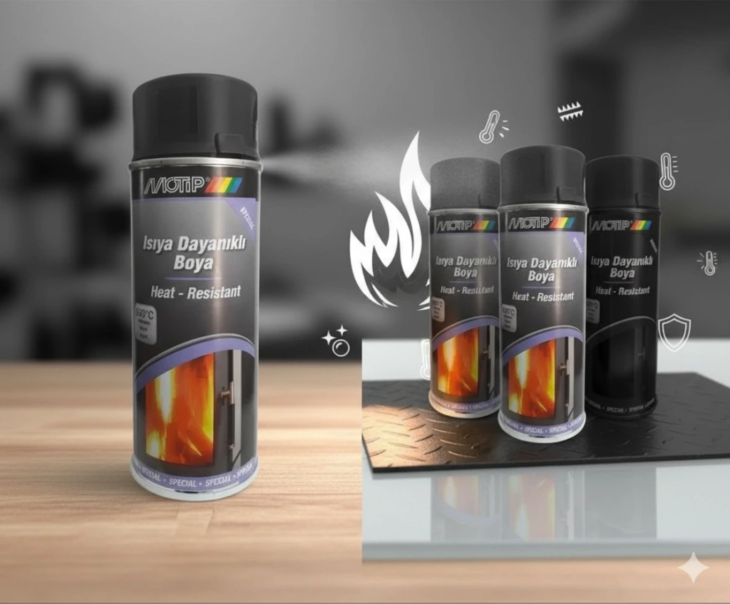· Motip ısıya dayanıklı boya, ısıya maruz kalan mangal,soba borusu,egzost vs. gibi objelerin tadilat ve rütuşunda kullanılır.