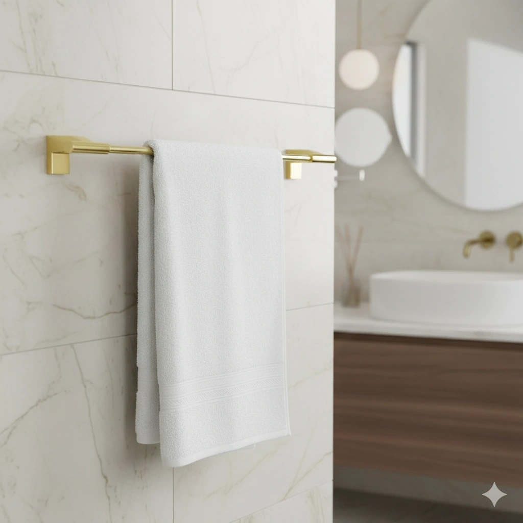 . Uzun wc havluluk Premium Altın aksesuar serisinde: . Pirinç çubuk ve boru