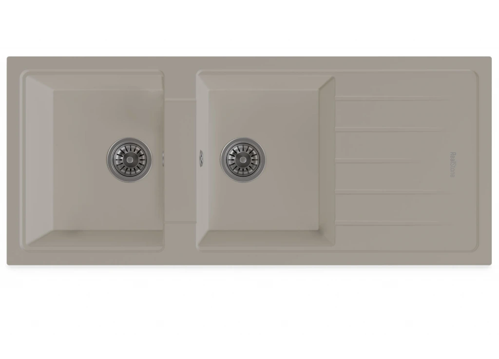 • Real Stone P021 Esila Çift Gözlü Granit Mutfak Eviyesi Gri 116.5 X 50 Cm